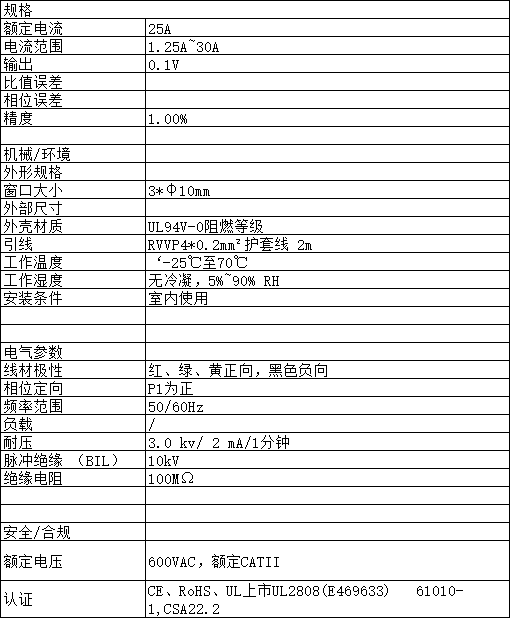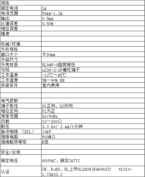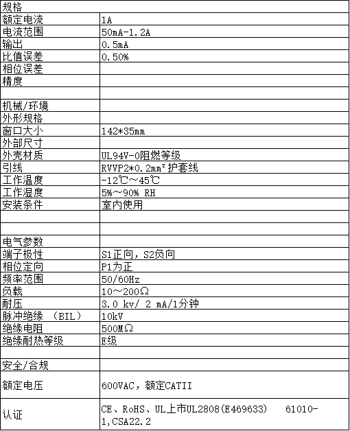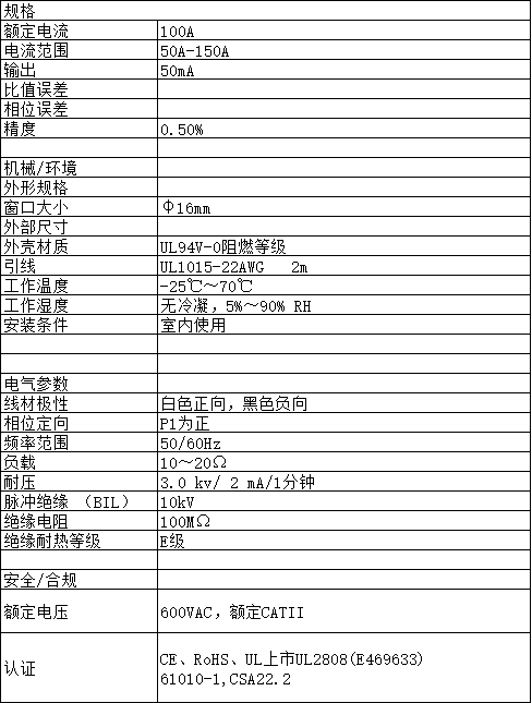 ●電流輸入范圍:50A~150A